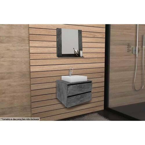 Armário C/ Balcão Banheiro Suspenso Bn3607 Cuba Bn3600 60cm E Espelho Bn3610 Mármore Lunar - Tecno Mobili