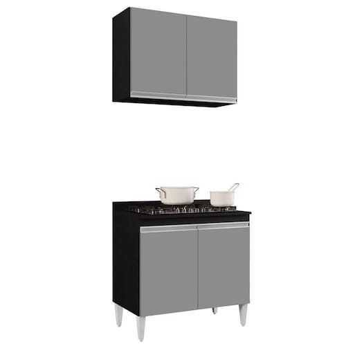 Ah, aCozinha! O que comprar primeiro? Se você é adepto ao famigerado Cooktop não perca o Kit Armário Aéreo Califórnia eBalcão para Cooktop Flórida Preto/Cinza da Lumil.