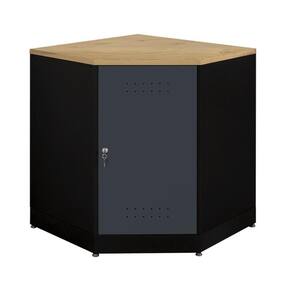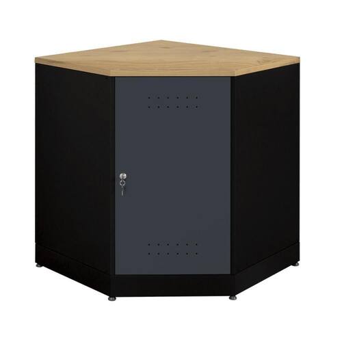 Armário de canto em aço com tampo em madeira 400, que encaixa nos cantos para melhor aproveitamento de espaço. Compõe a Presto Ábile, linha de Organizadores Modulares da Presto Sistemas de Organização, componíveis entre si, que podem ser configurados de maneira flexível e versátil, possibilitando diversas combinações.
