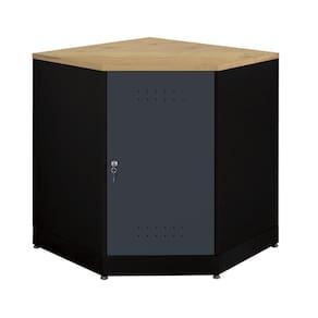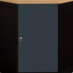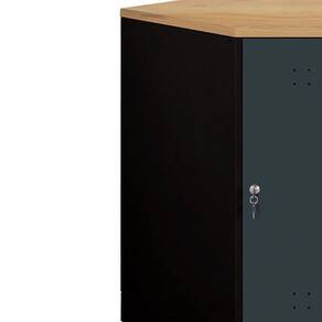 Armário de canto em aço com tampo em madeira 400, que encaixa nos cantos para melhor aproveitamento de espaço. Compõe a Presto Ábile, linha de Organizadores Modulares da Presto Sistemas de Organização, componíveis entre si, que podem ser configurados de maneira flexível e versátil, possibilitando diversas combinações.