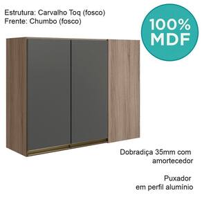 Armario Canto Reto 2p Mdf 89cm Kali 12213 Carvalho Toq Chumbo Nicioli Carvalho Toq Chumbo