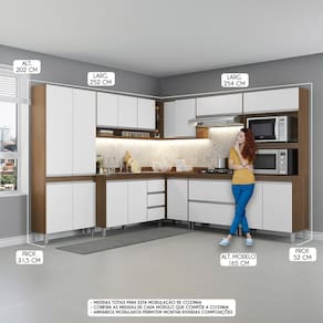 A Cozinha Modulada Sabrina oferece praticidade, funcionalidade e um design moderno, ideal para quem busca um ambiente bem planejado e organizado. Composta por módulos versáteis que podem ser ajustados de acordo com o espaço disponível, permite diversas composições para deixar sua cozinha mais funcional e aconchegante. Os puxadores perfil e os pés em ABS na cor prata trazem um toque elegante ao visual. Fabricada com materiais de qualidade, garante durabilidade e resistência para o dia a dia.