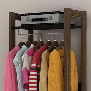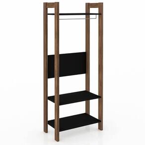 Armário Closet de Quarto com 3 Prateleiras Preto e Nogal AZ1029 Tecnomobili.