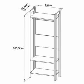 Detalhes do produto: - É de responsabilidade do montador seguir as instruções do Manual de Montagem, que são fundamentais para garantir a estrutura do móvel; - Produto enviado desmontado, a montagem é simples e pode ser realizada facilmente com a ajuda do manual de montagem; - A fixação das peças e/ou acessórios é feita por parafusos, cavilhas; - Possui 4 pés em MDP 25mm; - Possui 3 prateleiras que suportam 3 e 5kgs e aramado para cabide; - Garantia de 03 meses contra defeitos de fabricação; - Produto suporta até 18kgs.