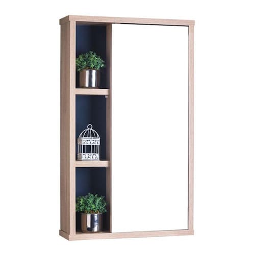 Suas medidas totais são: 70cm de Altura x 42cm de Largura x 13cm de Profundidade. Nichos Internos: 20cm de Altura x 22,5cm de Largura x 13cm de Profundidade. Nichos Externos: 20cm de Altura x 14cm de Largura x 13cm de Profundidade. O espelho mede: 66cm de Altura x 26cm de Largura. Peso: 8,5kg.