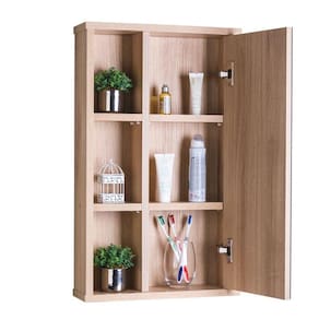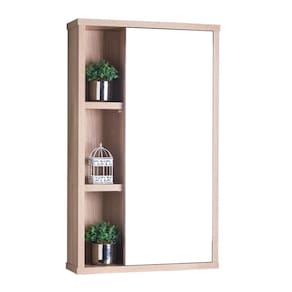 Suas medidas totais são: 70cm de Altura x 42cm de Largura x 13cm de Profundidade. Nichos Internos: 20cm de Altura x 22,5cm de Largura x 13cm de Profundidade. Nichos Externos: 20cm de Altura x 14cm de Largura x 13cm de Profundidade. O espelho mede: 66cm de Altura x 26cm de Largura. Peso: 8,5kg.