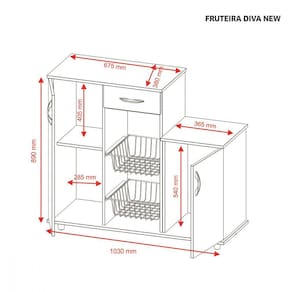 O Armário com Fruteira Diva da Notável Móveis, é aquela peça 2 em 1 que possui espaço para guardar frutas e acessórios da cozinha. Composto por 2 portas, 1 gaveta e 2 cestas aramadas para as frutas. Fabricada em MDP garantindo mais durabilidade ao produto.