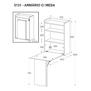 Altura: 160,5 cm x Largura: 63 cm x Profundidade: 107 cm