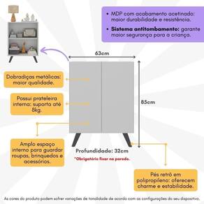 O Armário Cômoda Infantil 2 Portas Retrô Multimóveis MP4231 é a escolha perfeita para organizar o quarto das crianças com estilo e praticidade. Produzido em MDP, possui acabamento acetinado (cerca de 20% de brilho) que agrega sofisticação ao ambiente. Com 2 portas e uma prateleira interna que suporta até 8kg, oferece amplo espaço interno para guardar roupas, brinquedos e outros itens. Além disso,oarmário conta com sistema antitombamento para maior segurança do bebê. Os pés retrô em polipropileno adicionam um charme especial ao móvel, conferindo um visual leve. Proporcione ao seu filho um quarto organizado e charmoso com esta elegante armário cômoda infantil.