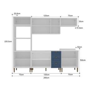 Armário Cozinha Americana Modulada Completa 260cm 5 Peças Com Balcão Multimóveis Cr20495 Branco/Azul