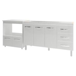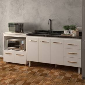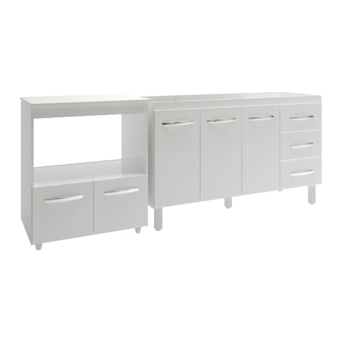 Armário Cozinha Balcão Gabinete de Pia 140 cm Carine e Balcão Para Microondas e Forno Elétrico Amanda Branco
