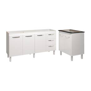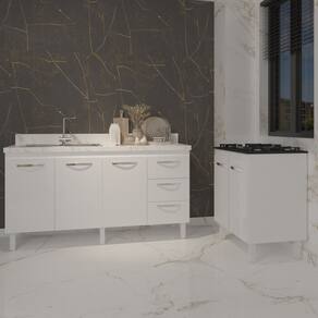 Armário Cozinha Balcão Gabinete de Pia 160 cm Estela e Balcão Fran para Fogão Cooktop 5 Bocas Branco