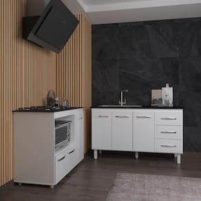 Renove sua cozinha com o Kit Balcão para Pia 140 cm Carine e Balcão para forno e Cooktop Alana 5 Bocas. Desenvolvido com materiais duráveis e acabamento UV de alta qualidade, este conjunto alia praticidade e elegância. Com amplo espaço para organização, ele torna sua cozinha mais eficiente e atraente. Ideal para quem deseja unir funcionalidade e estilo em um só ambiente!