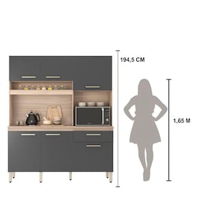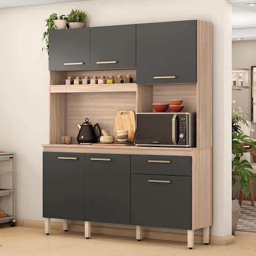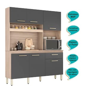 Design moderno e funcional!! Esse Kit cozinha é uma facilitadora na hora de organizar a sua cozinha. Acompanha pés com regulagem de altura, possui uma estrutura totalmente em MDP de alta qualidade, aumentando a durabilidade, resistência e qualidade do produto. Possui 1 gaveta grande com corrediças metálicas, diversas prateleiras internas, 6 portas com puxadores champanhe são modernos e resistentes, espaço para micro-ondas e um amplo nicho garantem o visual moderno e elegante. Para garantir a qualidade do produto dentro da embalagem, as caixas são revestidas por um plástico termoencolhível e todas as peças são separadas por isomanta, tudo para preservar e evitar o atrito entre as peças dentro da embalagem. Você contará também com um manual com o passo a passo para auxiliar no momento da sua montagem