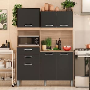 Você nunca imaginou que sua cozinha pudesse ficar tão bonita e organizada. Com este Kit Harmonia, o espaço fica ainda mais convidativo e sempre pronto para te ajudar a preparar pratos incríveis, com corrediças metálicas, pés e espaço para micro-ondas. Confeccionado com materiais de resistência e qualidade, ele é a melhor opção para completar seu lar. Aproveite, você merece!