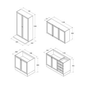 - Compartimentos variados, incluindo gabinetes superiores e inferiores, otimizando o aproveitamento do espaço em cozinhas de diferentes tamanhos