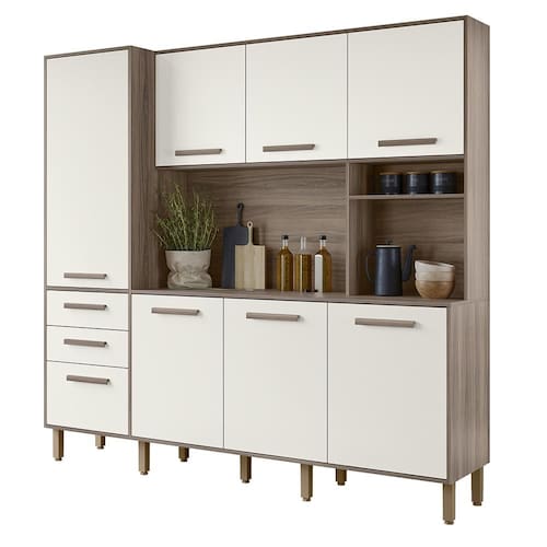 Apresentamos o nosso armário de cozinha Elegance, perfeito para adicionar um toque de sofisticação e funcionalidade à sua casa. Com prateleiras espaçosas e gavetas, este armário oferece amplo espaço de armazenamento para organizar seus pertences. Seu design moderno combina perfeitamente com qualquer estilo de decoração. Adquira agora mesmo este armário de cozinha versátil e transforme o seu espaço em um ambiente organizado e estiloso.