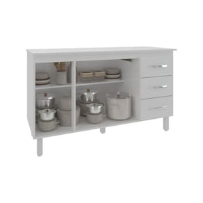 Armário Cozinha Gabinete De Pia 160 Cm Estela Branco E Tampo Tampão 160 Cm Mobília Decor Branco