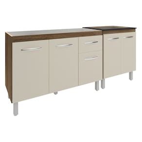 Armário Cozinha Gabinete Pia de 120 cm Aline e Balcão Fran para Cooktop 4 Bocas Savana Off White - Marrom