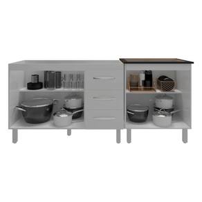 Altura: 83,5 cm (com os pés), 67 cm (sem os pés) Largura: 118 cm (padrão para pia de 120 cm) Profundidade: 50 cm Material: MDP (madeira) Portas: 2 portas Gavetas: 3 gavetas Prateleiras: 1 prateleira Puxadores: 5 puxadores plásticos cromados Pés: 5 pés reguláveis de plástico (altura dos pés: 16,5 cm; regulagem para nivelamento até 18 cm) Corrediças: Metálicas Acompanha tampo: Não