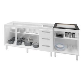 Você já conhece o Kit Balcão Para Pia de 140 cm Carina com Balcão para Cooktop Jade 4 bocas? Não? Você não sabe o que está perdendo! Este kit foi feito para a sua cozinha, desenvolvido em MDP de alta qualidade, com pintura UV ele é bonito, tem um design exclusivo, que vai encaixar perfeitamente na sua necessidade, adquira já o seu! Características Balcão de Pia Carina 138 cm:Altura:83,5 cm (Com os Pés).Altura sem os pés: 67 cm.Largura: 138 cm.Profundidade: 50 cm.Material: MDP (madeira).Portas: 2 Portas.Gavetas: 3 Gavetas.Prateleiras: 1 Prateleira.Puxadores: 5 puxadores plásticos cromadosPés: 5 pés reguláveis de plástico.Altura dos pés:16,5 cmRegulagem dos pés: Somente para nivelamento, (Chega no máximo a 18 cm).Corrediças: Metálicas.Indicações de Uso: Cozinha Acompanha tampo: Não Características Balcão Para Cooktop Jade 4 Bocas: Altura: 85 cm (Altura do produto com os pés e com o tampo) Altura sem os pés: 68,5 cm Largura: 70 cm Profundidade: 53 cm *A largura 70 cm e Profundidade 53 cm correspondem ao tampo do balcão, sem o tampo o balcão tem 68 cm de Largura e 50 cm de profundidade (mesma profundidade do balcão de pia). Dimensões do Nicho (Recorte para encaixar o cooktop): 53 x 36 cm Material: MDP Portas: 2 Portas Prateleiras: 1 prateleira (Opcional) Puxadores: 2 puxadores plásticos cromados Pés: 4 pés reguláveis de plástico. Altura dos pés: 16,5 cm Regulagem dos pés: Somente para nivelamento, (Chega no máximo a 18 cm). Acompanha tampo: Sim Características do kit montado: Largura 208 cm (lado a lado os dois balcões). Profundidade 53 cm (Profundidade do balcão para cooktop com tampo, sem tampo os balcões possuem 50 cm de profundidade.) Altura: 85 cm (Altura do balcão para cooktop com tampo, sem tampo os balcões possuem 83,5 cm de altura.) *Os Móveis não são acoplados, são montados individualmente e podem ser utilizados em locais diferentes. *Imagem meramente ilustrativa, não acompanha objetos decorativos, é somente os dois balcões.