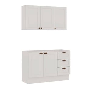 Imagina chegar na sua cozinha e ter tudo no lugar, com um visual leve e super aconchegante. Esse conjunto é completo: o balcão tem 2 portas espaçosas e 3 gavetas práticas, perfeitas pra organizar talheres, panelas e acessórios do dia a dia, enquanto o armário aéreo de 3 portas ajuda a manter pratos, copos e mantimentos sempre à mão, sem bagunça. O acabamento branco traz aquela sensação de limpeza e amplitude, deixando o ambiente mais iluminado, e os puxadores tom champanhe dão um charme especial. Além de lindo, é um móvel resistente, feito em 100% MDF, garantindo qualidade e sustentabilidade. Ah, e vale destacar: o kit não acompanha tampo, assim você pode escolher o que mais combina com seu estilo ou até instalar uma pia. Uma solução perfeita pra quem busca praticidade no dia a dia e quer deixar a cozinha com muito mais charme e personalidade!