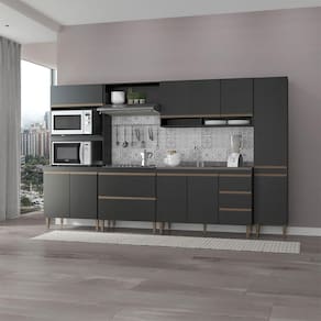 Armário Cozinha Modulada Grande 320x202cm 6pçs Menu Móveis Preto A Cozinha Modulada Sabrina foi desenvolvida para atender todas as suas necessidades do dia a dia com um design moderno, cheio de atitude, personalidade, funcionalidade, beleza e versatilidade. A Cozinha preta e a tendencia do momento e foi arquitetada com modulos uteis que vao facilitar a sua rotina diaria nos preparos e armazenamento dos utensilios, mantendo sua cozinha sempre organizada.