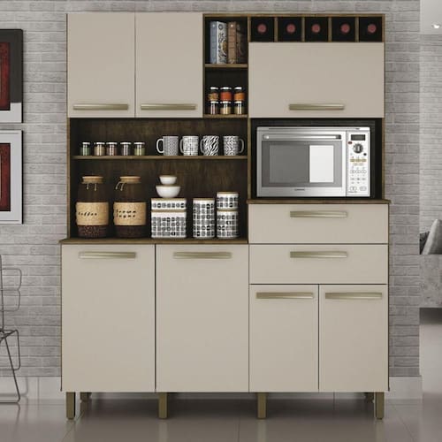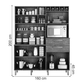 Espaço para micro-ondas 66x41x45cm (LXAXP) Espaço livre para tampo de trabalho 89x40x45cm (LXAXP) Pés com regulagem de 25mm, deixando o produto com nivelamento perfeito.