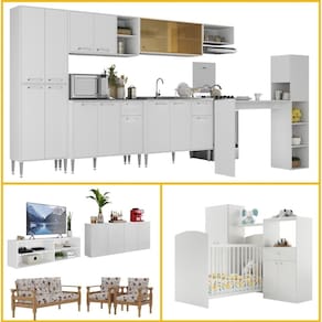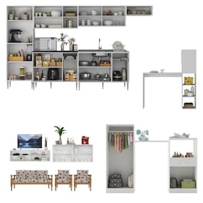 Desfrute do conforto e praticidade do Armário Cozinha/Sala Estar/Quarto Bebê Kit Casa Completa 3 ambientes Multimóveis CR60002, que inclui móveis elegantes e funcionais, transformando sua casa em um espaço acolhedor e bem equipado.