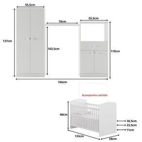 -Acompanha cômoda e guarda-roupas para o bebê, sendo módulos individuais.