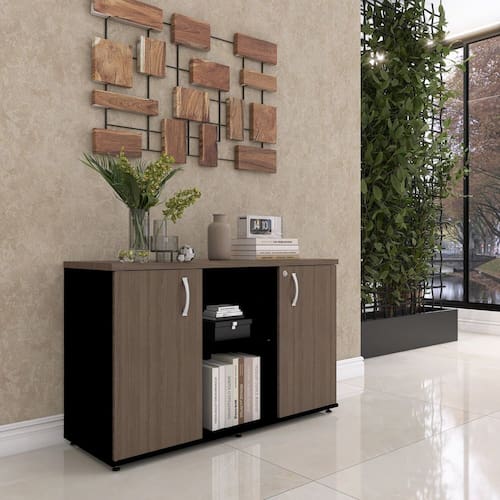 Seu design clean combina facilmente com diferentes mobílias, mantendo a harmonia da decoração. Ideal para o dia a dia de trabalho, é perfeito para deixar seu ambiente organizado, funcional e elegante. Acabamento da Porta: BP Acabamento da Prateleira: BP Ambiente Principal: Escritório Armário Suspenso: Não Complexidade da Montagem: Média: pode ser montado por mais de uma pessoa e/ou necessite de maior conhecimento para montagem Cor: Preto/Walnut Cor do Produto: Preto/Walnut Cor Interna: Preto/Walnut Escala de Brilho: Semi-Fosco Escala de Brilho da Porta: Semi-Fosco Escala de Brilho da Prateleira: Semi-Fosco Formato do Armário: Retangular Itens Inclusos: 1 Armário Manual de Montagem e Instalação: https://product-hub-prd.madeiramadeira.com.br/970611/documents/561ec3b0-7938-4fbb-948d-f04821c22dae2730299387017413561497596.pdf Marca: Pandin Móveis Material da Porta: MDP Material da Prateleira: MDP Material dos Pés: Polipropileno Material Principal: MDP Necessita Montagem: Sim Orientação do Armário: Horizontal Origem do Produto: Nacional Peso: 36,485 kg Peso Máximo por Prateleira: 15 kg Possui Espelho: Não Possui Mesa Retrátil: Não Possui Pés: 04 Possui Portas: 02 Possui Prateleiras: 02 Quantidade de Armários: 1 Recomendações de Uso, Manutenção e Limpeza: Limpeza feita com um pano levemente umedecido e um pano seco. Sapatas Niveladoras: Sim Sistema de Montagem: Parafuso Suporta Até (kg): 30 kg Tamanho do Armário: Baixo (Até 90cm) Tipo de Armário: Semi-Fechado Tipo de Dobradiça/Corrediça da Porta: Alumínio Tipo de Puxador da Porta: Externo Marca: Não Informado
