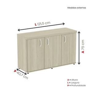 Ideal para escritórios, salas de reunião ou home office. Acabamento da Porta: BP Acabamento da Prateleira: BP Acabamento dos Pés: Polipropileno Ambiente Principal: Escritório Armário Suspenso: Não Complexidade da Montagem: Média: pode ser montado por mais de uma pessoa e/ou necessite de maior conhecimento para montagem Cor: Castanheira Natural Cor do Produto: Castanheira Natural Cor Interna: Castanheira Natural / Preto Escala de Brilho: Semi-Fosco Escala de Brilho da Porta: Semi-Fosco Escala de Brilho da Prateleira: Semi-Fosco Espessura do Tampo: 40 mm Formato do Armário: Retangular Itens Inclusos: 1 Armário e Kit Ferragens Linha ou Coleção: PE40 Manual de Montagem e Instalação: https://product-hub-prd.madeiramadeira.com.br/463737143/documents/290a6c74-dde8-4fb1-beda-332109ac71d53144221387017555271061887.pdf Marca: Pandin Móveis Material da Porta: MDP Material da Prateleira: MDP Material do Puxador da Porta: Poliestireno Material dos Pés: Polipropileno Material Principal: MDP Necessita Montagem: Sim Orientação do Armário: Horizontal Origem do Produto: Nacional Pés Reguláveis: Sim Peso: 38,804 kg Peso Máximo por Prateleira: 15 kg Possui Espelho: Não Possui Mesa Retrátil: Não Possui Nicho: Não Possui Pés: 06 Possui Portas: 03 Possui Prateleiras: 03 Quantidade de Armários: 1 Recomendações de Uso, Manutenção e Limpeza: Utilizar um pano levemente umedecido com água, para finalizar utilizar um pano seco. Sapatas Niveladoras: Sim Sistema de Montagem: parafuso Suporta Até (kg): 45 kg Tamanho do Armário: Baixo (Até 90cm) Tipo de Armário: Totalmente Fechado Tipo de Dobradiça/Corrediça da Porta: Aço Tipo de Puxador da Porta: Externo Marca: Não Informado