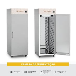 O armário possui uma ampla faixa de temperatura, ajustável entre 3C e 50C, permitindo um controle preciso da fermentação de acordo com as necessidades de cada receita.