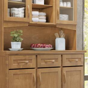 Armário com estrutura em Madeira de Pinus Reflorestada, acabamento feito em Poliuretano (PU) FOSCO, que preserva as caracteristicas da madeira e garante uma ótima conservação e durabilidade do produto. Possui gavetas e prateleiras que proporcionam espaço para tudo. Puxador de madeira que valoriza ainda mais o produto.