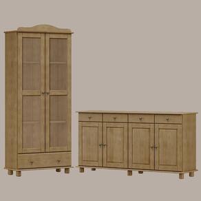 Modelo: Armario Cristaleira e Balcao 4 Portas Madeira Maciça