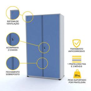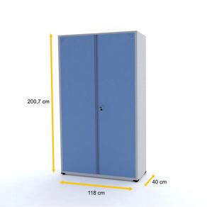 - Armário de aço com 2 portas, confeccionado em chapa de aço 26 (0,45 mm) e prateleiras em chapa de aço 24 (0,60 mm).