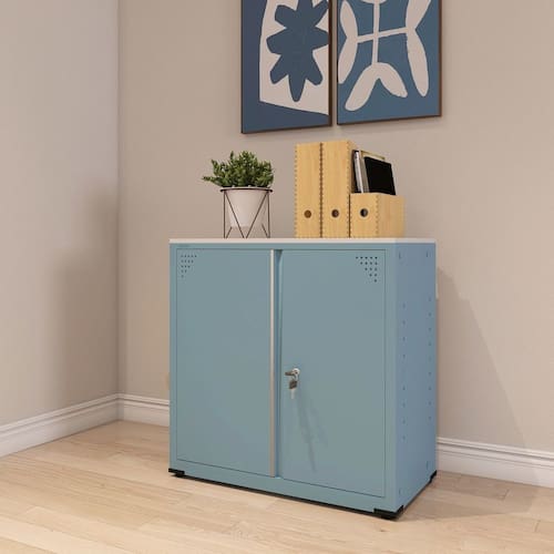 Nosso armário de aço tem duas portas com fechadura cilíndrica tipo Yale com duas chaves , 1 prateleiras que tem por sua vez a capacidade de 20 kg, facilitando a organização do seu ambiente de trabalho no dia dia. Acabamento da Porta: Pintura Acabamento da Prateleira: Pintura Acabamento dos Pés: Polipropileno Altura dos Pés: 3 cm Ambiente Principal: Escritório Complexidade da Montagem: Média: pode ser montado por mais de uma pessoa e/ou necessite de maior conhecimento para montagem Cor: Azul Dali Cor do Produto: Azul Dali Cor Flex: Não Cor Interna: Azul Dali Escala de Brilho: Semi-Fosco Escala de Brilho da Porta: Semi-Fosco Escala de Brilho da Prateleira: Semi-Fosco Itens Inclusos: 1 Armário e Manual de Montagem. Linha ou Coleção: Aço Manual de Especificação Técnica: https://product-hub-prd.madeiramadeira.com.br/646647/documents/8235ddbc-b5fc-4873-b4ed-be6fcf21f585wuspsharing.view3Fusp3Dsharing Manual de Montagem e Instalação: https://product-hub-prd.madeiramadeira.com.br/646647/documents/f4b4d706-bdf0-4c6a-bca3-88878a2f8e40wuspsharing.view3Fusp3Dsharing Material da Porta: Aço Material da Prateleira: Aço Material dos Pés: Polipropileno Material Principal: Aço Montagem Flex: Não Necessita Montagem: Sim Origem do Produto: Nacional Pés Reguláveis: Sim Peso: 17,15 kg Peso Máximo por Prateleira: 20 kg Possui Espelho: Não Possui Pés: 04 Possui Portas: 02 Possui Prateleiras: 01 Recomendações de Uso, Manutenção e Limpeza: Utilizar um pano levemente umedecido com água, para finalizar utilizar um pano seco. Sapatas Niveladoras: Não Sistema de Montagem: Encaixe Suporta Até (kg): 20 kg Tipo de Dobradiça/Corrediça da Porta: Aço Tipo de Puxador da Porta: Embutido