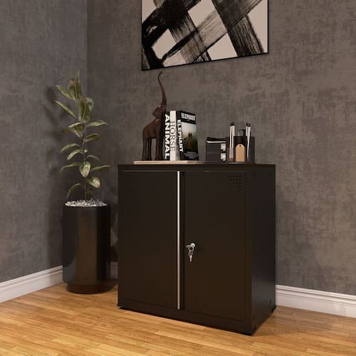 Nosso armário de aço tem duas portas com fechadura cilíndrica tipo Yale com duas chaves , 1 prateleiras que tem por sua vez a capacidade de 20 kg, facilitando a organização do seu ambiente de trabalho no dia dia. Acabamento da Porta: Pintura Acabamento da Prateleira: Pintura Acabamento dos Pés: Polipropileno Altura dos Pés: 3 cm Ambiente Principal: Escritório Complexidade da Montagem: Média: pode ser montado por mais de uma pessoa e/ou necessite de maior conhecimento para montagem Cor: Preto Cor do Produto: Preto Cor Flex: Não Cor Interna: Preto Escala de Brilho: Semi-Fosco Escala de Brilho da Porta: Semi-Fosco Escala de Brilho da Prateleira: Semi-Fosco Itens Inclusos: 1 Armário e Manual de Montagem. Linha ou Coleção: Aço Manual de Especificação Técnica: https://product-hub-prd.madeiramadeira.com.br/646650/documents/5a773f27-0f5f-44c2-98a2-db0a6010e1fcwuspsharing.view3Fusp3Dsharing Manual de Montagem e Instalação: https://product-hub-prd.madeiramadeira.com.br/646650/documents/9c8a73e0-a2f2-46a3-a145-494abf0d9de88936321133060011armriodeao.pdf Material da Porta: Aço Material da Prateleira: Aço Material dos Pés: Polipropileno Material Principal: Aço Montagem Flex: Não Necessita Montagem: Sim Origem do Produto: Nacional Pés Reguláveis: Sim Peso: 17,15 kg Peso Máximo por Prateleira: 20 kg Possui Espelho: Não Possui Pés: 04 Possui Portas: 02 Possui Prateleiras: 01 Recomendações de Uso, Manutenção e Limpeza: Utilizar um pano levemente umedecido com água, para finalizar utilizar um pano seco. Sapatas Niveladoras: Não Sistema de Montagem: Encaixe Suporta Até (kg): 20 kg Tipo de Dobradiça/Corrediça da Porta: Aço Tipo de Puxador da Porta: Embutido
