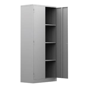 Armário de Aço multi-uso Ideal para escritórios, almoxarifados, empresas e residências, possui 02 (duas) portas de abrir e tres prateleiras para acomodação de materiais e objetos. Possui cremalheira para ajuste das prateleiras, fechadura com duas chaves. Produzido em Aço de alta qualidade em chapa 26, com tratamento anti-ferruginoso, possui 02 portas de abrir com fechadora com duas chaves e puxador, 03 prateleiras.O acabamento em sistema de pintura eletrostática a alta temperatura a pó (epóxi) também garante maior durabilidade da cor e resistência à ferrugem.