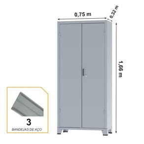 Armário de Aço c/ 02 portas – PA 75 – 1,66×0,75×0,32m – CHAPA # 26 – Armário para Escritório