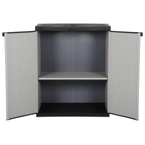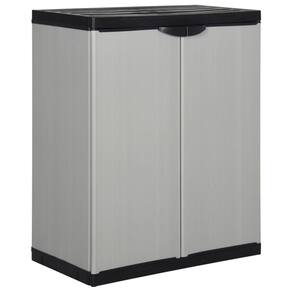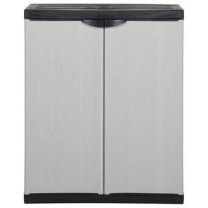 - Cor: cinza e preto- - Material: PVC, PP (polipropileno) - - Dimensões: 26,8" x 15,7" x 33,5" (L x P x A) - - Tamanho da prateleira: 25,2" x 13,8" (L x P) - - Peso líquido: 14,3 lb- - Carga máxima por prateleira: 44,1 libras- - Com 2 portas e 1 prateleira- - Com uma trava de segurança (para imobilizar a prateleira) - - Fechável com um cadeado (não incluído) - - Montagem necessária: Sim- - -:: Para evitar que tombe, este produto deve ser utilizado com o dispositivo de fixação na parede (não fornecido) .-