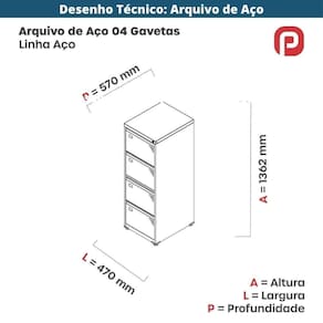 O Armário de Arquivo de Aço 4 Gavetas Pandin é projetado para oferecer alta resistência e funcionalidade em ambientes de trabalho exigentes. Fabricado em chapa de aço normatizada, suas laterais, fundos e frentes de gavetas são feitos em chapa de aço #26 (0,45mm), enquanto a parte superior é confeccionada em chapa #24 (0,60mm), proporcionando uma estrutura robusta e . Os trilhos das gavetas utilizam chapa #18 (1,20mm), garantindo um deslizamento suave e . O reforço estrutural é proporcionado por canaletas em formato U, conforme normas técnicas (AWSSAED8-9M), e o sistema de travamento conta com uma trava frontal horizontal em formato U (15x15x15mm) entre as duas primeiras gavetas, além de uma trava na base inferior frontal e outra na base traseira, ambas confeccionadas em chapa #20 (0,90mm), proporcionando e estabilidade ao móvel.