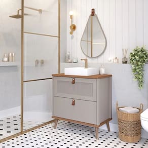 CARACTERÍSTICAS: - Gabinete para Banheiro com Cuba desenvolvido em MDF - Porta em MDF revestido com tela sintética de fácil limpeza e antimofo - Acabamento em pintura BP. - Cuba em mármore sintético. - Amplo espaço interno - Porta com pistão à gás - Puxadores de estilo retrô em couro sintético.