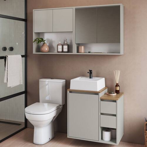 - Acompanha: Armário de Banheiro + Kit ferragens + Manual de Montagem