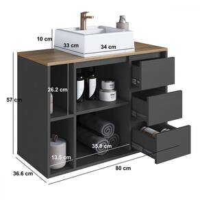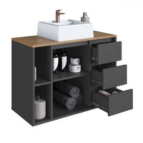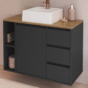 O(a) Armário de Banheiro Belagavi 1 Porta 3 Gavetas com Cuba Grafite - Art In Móveis é produzido em MDP na escala de brilho Fosco, e possui um grau de dificuldade de montagem: Médio.