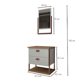 O(a) Armário de Banheiro Cielo 60cm 2 Gavetas C/ Espelheira 100% Mdf Pistache/Freijó - Loja é produzido em 100% MDF na escala de brilho Semi-Brilho, e possui um grau de dificuldade de montagem: Médio.