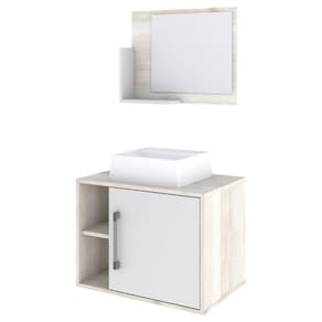 O(a) Armário de Banheiro com Cuba e Espelho 1 Porta 2 Prateleiras Snow/Branco Chess 13687 - Compace é produzido em MDP na escala de brilho Fosco, e possui um grau de dificuldade de montagem: Médio.