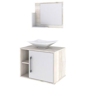 O(a) Armário de Banheiro com Cuba e Espelho 1 Porta 2 Prateleiras Snow/Branco Chess 13689 - Compace é produzido em MDP na escala de brilho Fosco, e possui um grau de dificuldade de montagem: Médio.