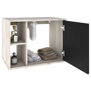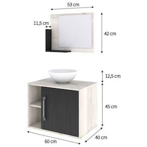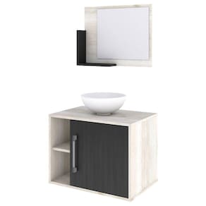 O(a) Armário de Banheiro com Cuba e Espelho 1 Porta 2 Prateleiras Snow/Preto ônix 13688 - Compace é produzido em MDP na escala de brilho Fosco, e possui um grau de dificuldade de montagem: Médio.