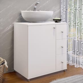 O(a) Armário de Banheiro 1 Porta 3 Gavetas 3386 Branco Bp - Politorno é produzido em MDF e MDP